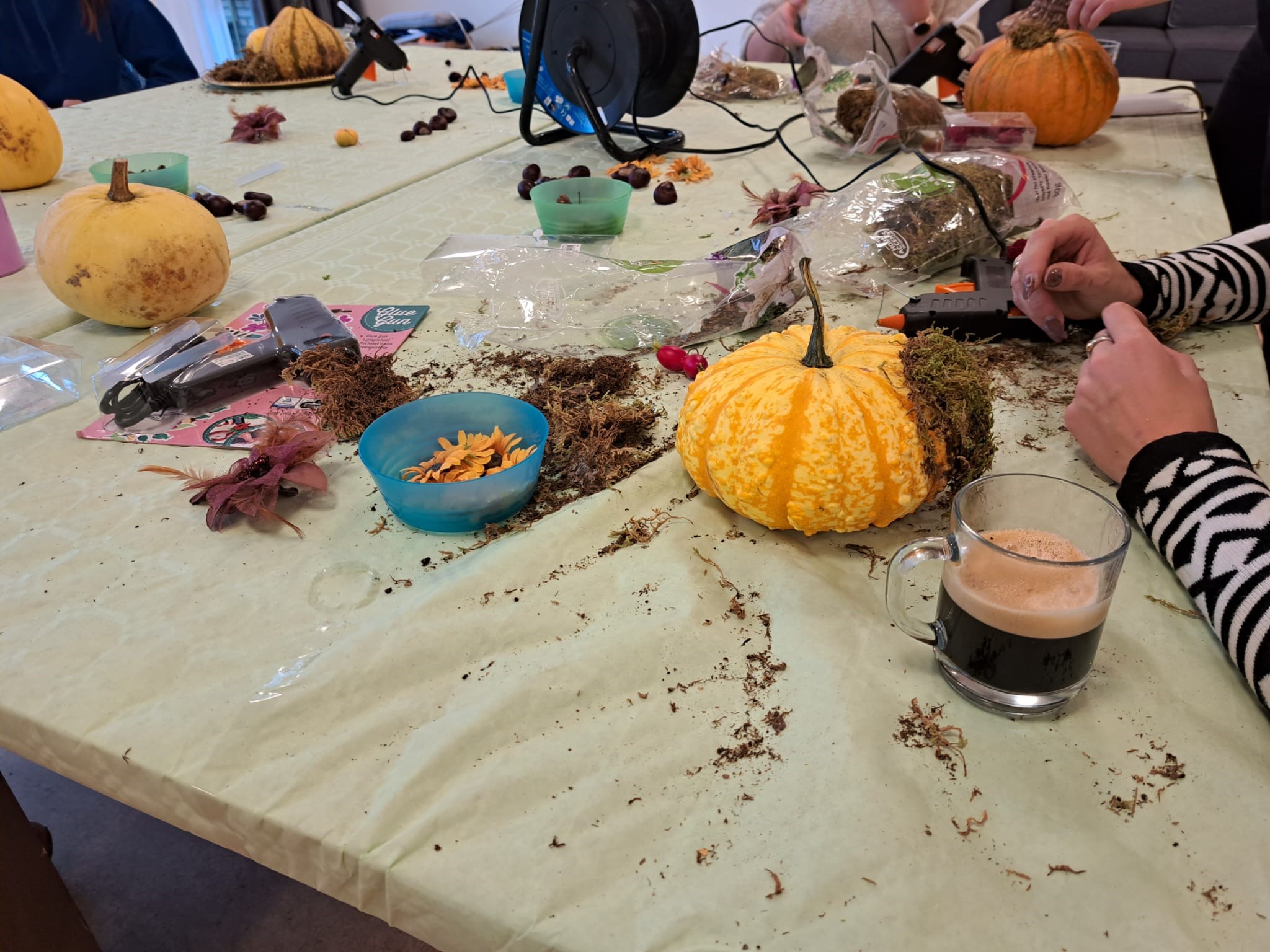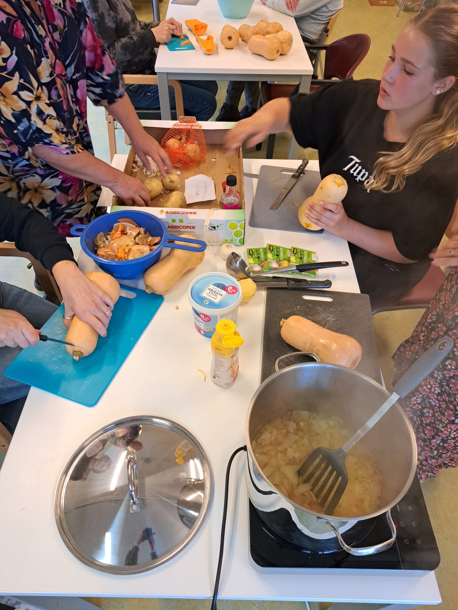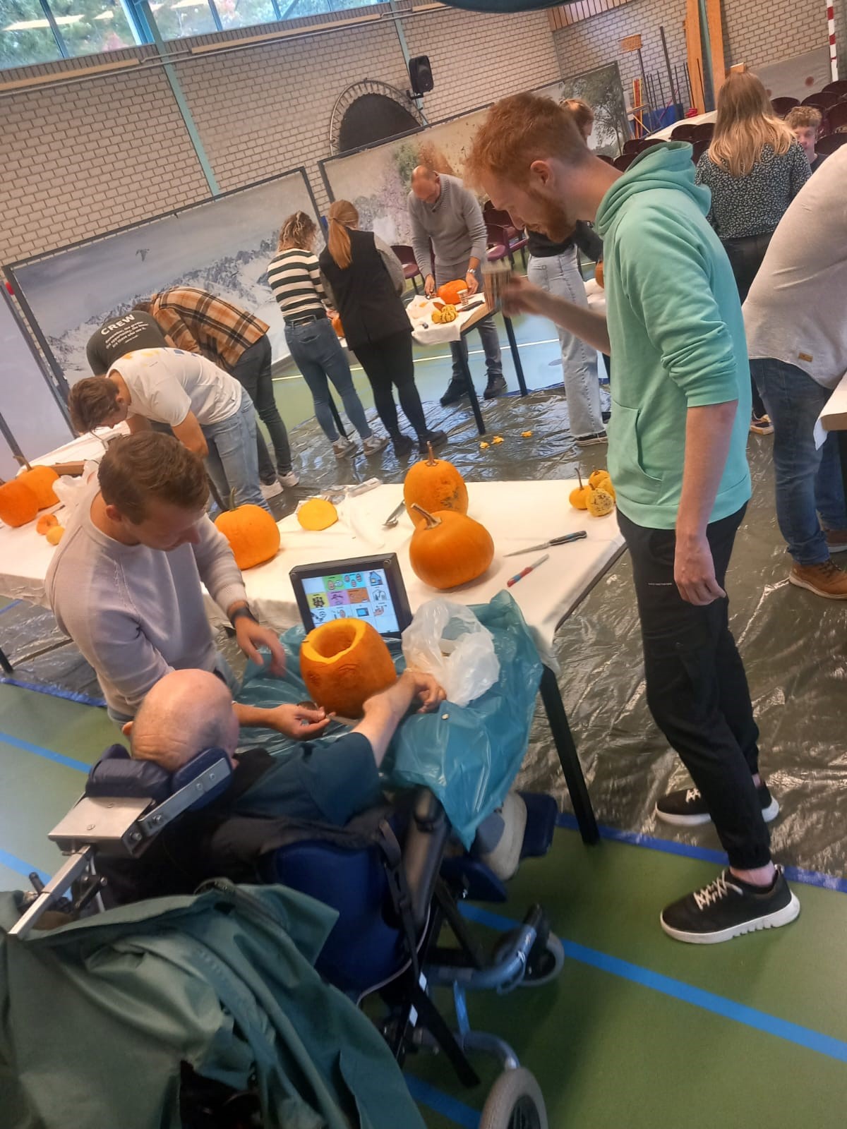 De ochtend stond in het teken van gezelligheid en creativiteit. Ze kookten soep, maakten herfststukjes, holden pompoenen uit, wandelden en werkten in de tuin. Iedereen deed mee op zijn eigen manier. De bewoners van De Trans genoten van het gezelschap en de aandacht.